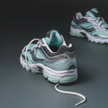 The 2000s called. This 2010 highlight of the ProGrid Omni 9 adds breathable mesh and synthetic details to functional and utilitarian outdoor considerations. It's tone-on-tone metallics, true iridescence, and reflectivity for the books. A recycled lining and footbed add a touch of sustainability